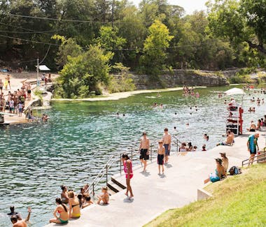 Within Zilker Park's 358 acres lies one of the crown jewels of Austin - Barton Springs Pool. The pool itself measures three acres in size, and is fed from underground springs with an average temperature of 68-70 degrees, ideal for year-round swimming. Over the years, Barton Springs Pool has drawn people from all walks of life, from legislators who have concocted state laws there to free-spirited, topless sunbathers who turned heads in the 1970s. Robert Redford learned to swim at the pool when he was five years old while visiting family in Austin. Today, Barton Springs still attracts a diverse crowd of people and has seen record setting numbers of visitors nearing 800,000 in recent years.